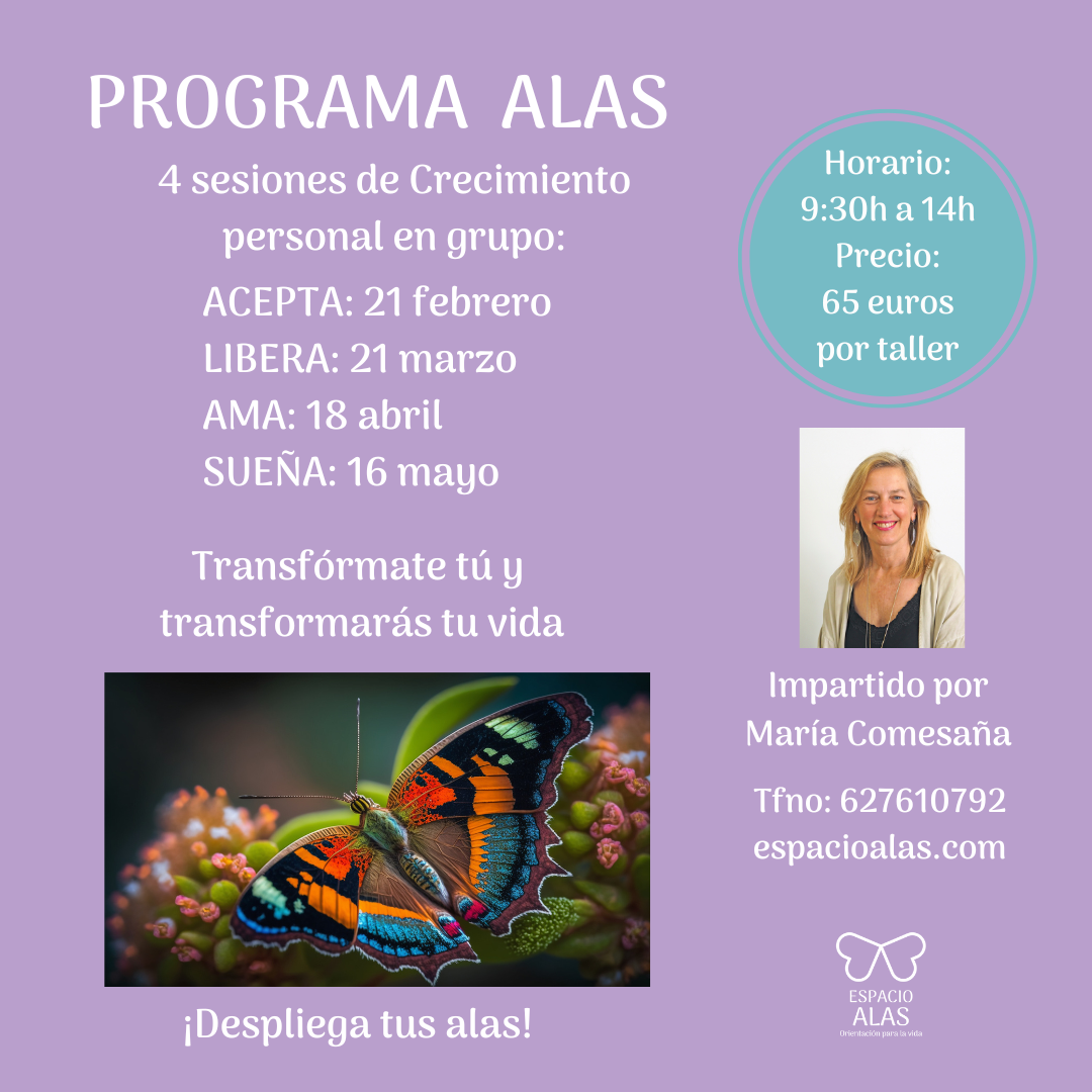 El nombre de ALAS responde a una manera de vivir, desde la libertad y la coherencia entre lo que sentimos, pensamos y actuamos. Y para ello necesitamos conectarnos con nuestra esencia y nuestro corazón, para descubrir quienes somos realmente y dejarnos transformar, desplegando nuestras alas para disfrutar y compartir la vida.